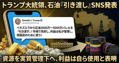 【速報】トランプ大統領「石油は市場価格で売られ、収入は私が管理する」ベネズエラ暫定政権、5000万バレルの高品質石油を米国に引き渡しへ