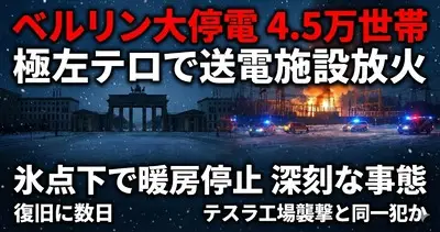 【速報】氷点下のドイツ首都ベルリンで約4万5000世帯が停電 極左団体が設備に放火したのが原因