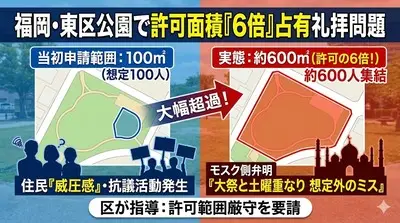 【速報】モスク急増164カ所、運営「公園の100㎡占有許可申請→許可したら約600人が600㎡占有」宗教法人の代表役員「1千人以上が集まった、想定超えた」