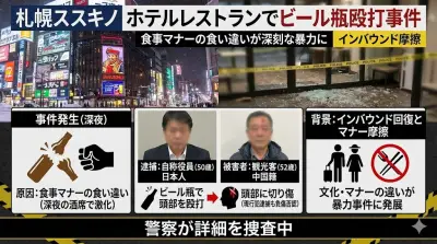 【北海道】会社役員の男、食事マナーの悪い中国人旅行客をビール瓶で殴打 彼ら旅行客にマナーなんて無理すぎる要求だった模様