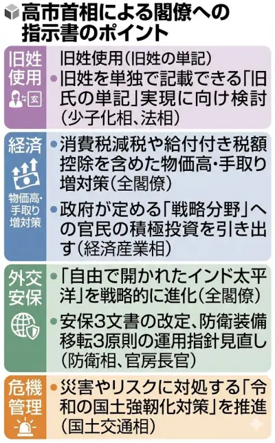 【速報】高市首相、「旧姓の単記」検討を閣僚に指示 指示書の全容判明