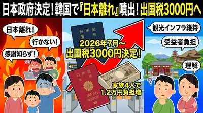 【速報】韓国メディアが日本の出国税引き上げに注目、韓国ネットは賛否「つまり来るなと言ってるんだよ」「旅行に来てもらうことに感謝もせずこんなことをする国」