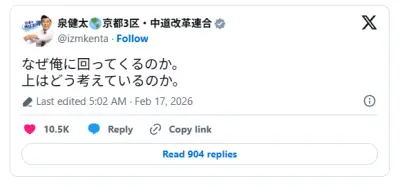 【速報】中革連・野田氏「高市総理への期待感だけの『推し活』のようなイメージ論に選挙戦全体が支配された」