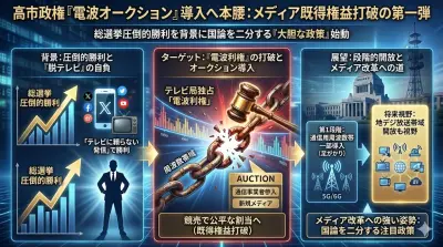 【速報】高市総理が掲げた「国論を二分するような大胆な政策」判明か→テレビ局が持つ周波数帯を俎上に載せる準備整う