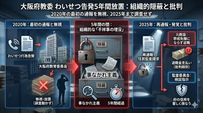 【住民監査請求】大阪府教委、高校教諭「わいせつ」告発を5年放置 2回目の通報でやっと調査免職も退職金支給する身内激甘体質