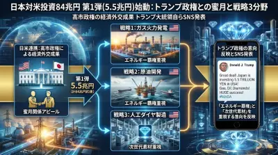 【対米投融資】第1号トランプ氏SNS表明「5.5兆円、発電・原油輸出・人工ダイヤ、嬉しい!」残り79.5兆円