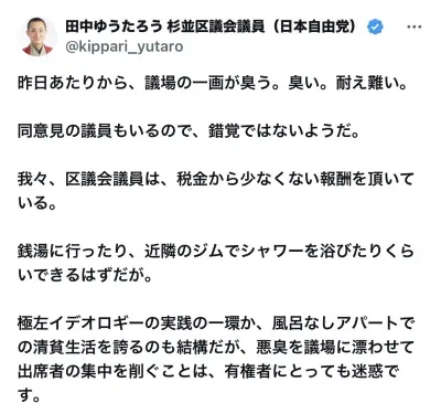 【悲報】杉並区議会でパさんの体臭がヤバすぎて議場がざわつく