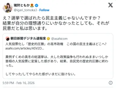 【速報】高学歴集団の朝日新聞、アイドルにやっつけられてしまう「結果が自分の理想通りにいかなかったとしても、それが民意だと私は思います」