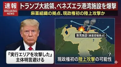 【速報】アメリカ、ベネズエラを攻撃したと発表 初の陸上攻撃か