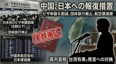 【速報】中国政府が「日本旅行のビザ申請を6割以下に」と旅行会社に指示、日本への団体旅行取りやめ要請も