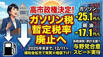 【速報】高市政権、ガソリンを180円→130円まで下げてしまう