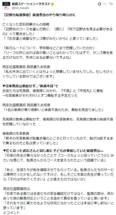 【速報】校長「転覆事故に遭った生徒保護者には引率担任から直線連絡」→連絡が来たのは5日後…