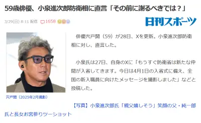 【速報】59歳大物二世俳優、小泉防衛相に直言「その前に謝るべきでは?」