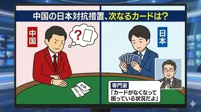 【速報】中国の日本対抗措置、次なるカードは?専門家「カードがなくなって困っている状況だよもうwww」