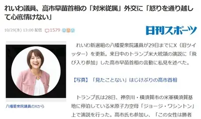 【速報】れいわ議員、高市首相の「対米従属」外交に失望 怒ってるのほぼこっち側説