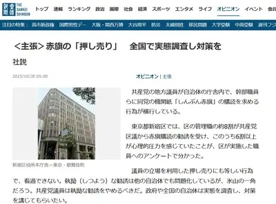 【共産党】自治体庁舎内で、幹部職員らに赤旗押し売り横行 全国で実態調査へ 新宿区では約8割が勧誘経験「うち6割以上が心理的圧力」