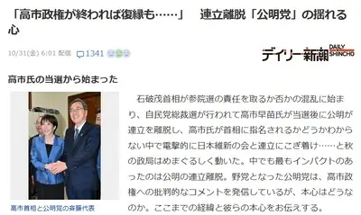 【速報】公明党、連立解消をじわじわ後悔してて草「もう少し我慢しても良かったのではないか」