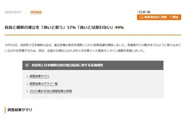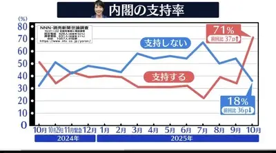 【速報】高市内閣の支持率71%、歴代5位の高さを記録