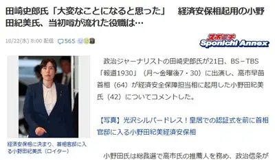 【悲報】田崎史郎、公明党切られてから様子がおかしい「小野田紀美氏さん、きつい外国人政策出してくるんじゃないかと警戒しています」