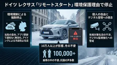 【速報】ドイツ、レクサスのリモートスタート(遠隔エンジン始動機能)を突然停止、気候対策を口実に事前通知なしにアプリ更新などで機能が無効化