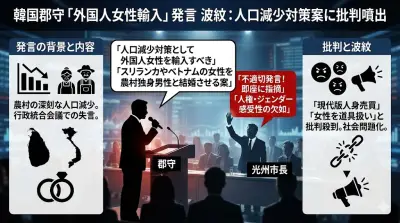 【速報】韓国地方自治体首長の発言が物議「外国人女性を輸入して人口消滅を防ぐべき」