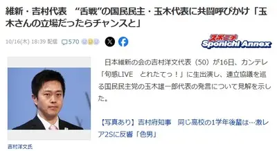 【速報】 維新・吉村代表、玉木代表に共闘呼びかけ 「玉木さん、今がチャンス。政策実現できる」