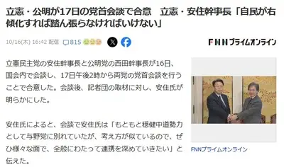 【悲報】立民と公明がタッグ結成 慌てて国民民主も「ボクらも仲間に入れて~」と土下座wどうしてこうなった