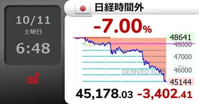 【速報】日経平均株価、一時時間外取引-3,402円大暴落