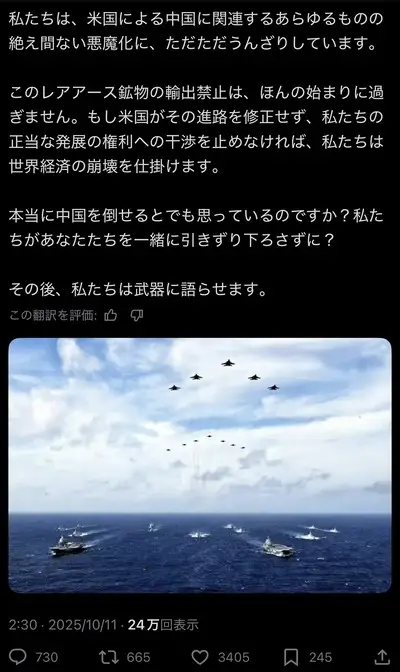 【速報】米国、中国に100%追加関税 中国のレアアース規制に対抗措置を発表「全ての重要な米国製ソフトウエアに輸出規制」