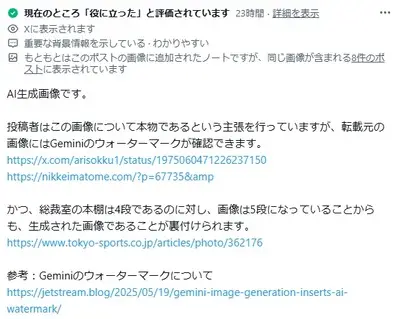 【悲報】SNS&AI規制待ったなし、この拡散されている高市総裁の写真がAI生成画像だったと判明、悪質すぎて衝撃走る・・・