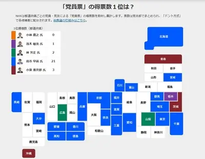 【速報】最新予測 1位:小泉進次郎氏(100票) 2位:林芳正氏(70票)