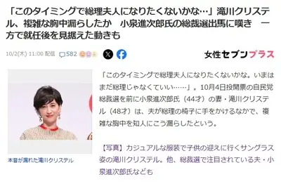 【悲報】「このタイミングで総理夫人になりたくないかな。いまはまだ総理じゃなくていい…」滝川クリステル、複雑な胸中漏らしたか