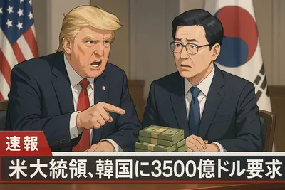 【速報】トランプ大統領、韓国に約495兆ウォンの現金前払いを要求 韓国が拒否「外貨準備高84%相当する金額を短期間で投資は不可能」