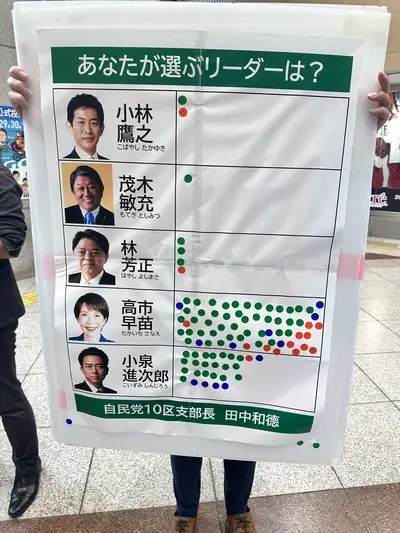 【画像】神奈川自民党、JR川崎駅で総裁選街頭アンケート実施『高市圧勝』の結果になったため白紙した疑惑www