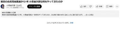 【悲報】小泉進次郎YouTubeコメ欄もついに封鎖『国民の皆さん、さようなら』