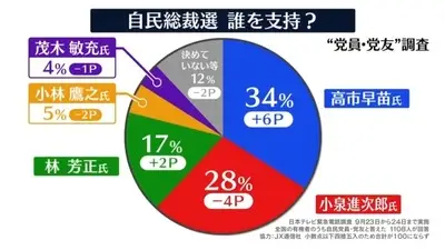 【自民党総裁選】日テレ調査 高市早苗が前回1位の小泉進次郎を上回り逆転1位独走開始!前回の石破茂投票者は小泉進次郎が最多