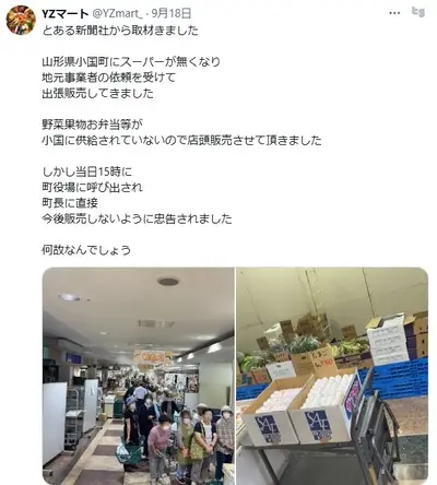 町唯一のスーパーが休業、隣町スーパーが出張販売→町長が呼びつけ販売禁止を言い渡す→SNSで告発された町長は事実関係否定「苦慮している」