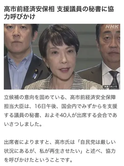 【自民総裁選】高市早苗、既に会合で40人近く集まっている模様