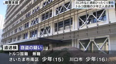 【埼玉】ひったくり事件で2回逮捕されていたトルコ国籍少年2人、別の4件の事件にも関与したとして追送検「犯罪行為だらけ」