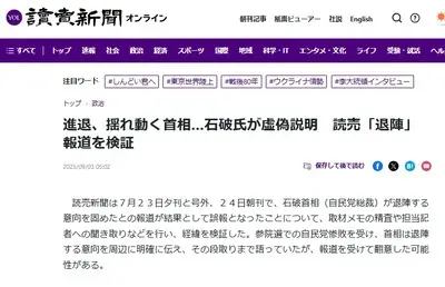 【速報】読売新聞が7月23日夕刊と号外などの「石破退陣」大誤報、報道検証の結果「石破氏が虚偽説明」が原因