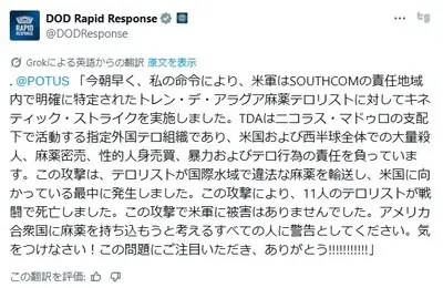 【速報】動画 米軍が南米麻薬組織に武力攻撃開始「米軍被害ゼロ、テロリスト全員死亡」トランプ大統領「米国に麻薬を持ち込もうとする全ての人に警告とする」