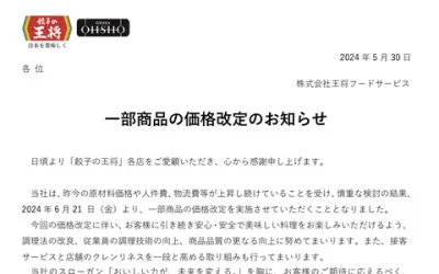 【悲報】「餃子の王将」、ギョーザ値上げ。終わりだよこの国