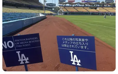 【悲報】ドジャースタジアム、何故か日本語で立ち入り禁止の注意看板を出してしまう