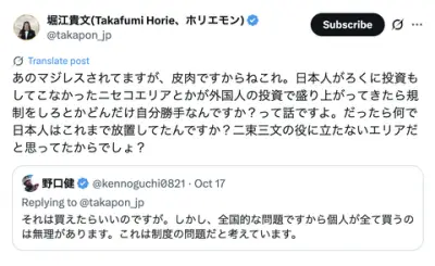 【正論】ホリエモン「ニセコはアイヌの土地を日本人が侵略しわけだろ?日本人ファースト的なムーブの人たちの自分勝手な考えはほんと醜悪」