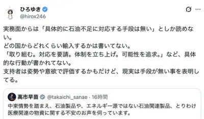 【正論】ひろゆき「高市首相が投稿した石油不足対策は具体的な行動が書かれてない。現実は手段が無い事を表明してる」