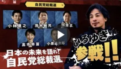 【悲報】自民党、総裁選のMCにひろゆきを抜擢