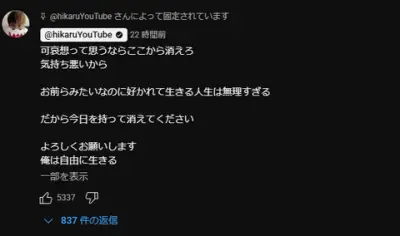 【悲報】ヒカルさんの最新動画、コメント大荒れ
