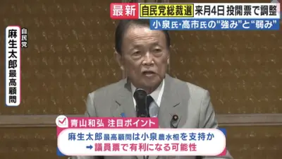 【悲報】麻生太郎「今回は小泉でいいんじゃないか」