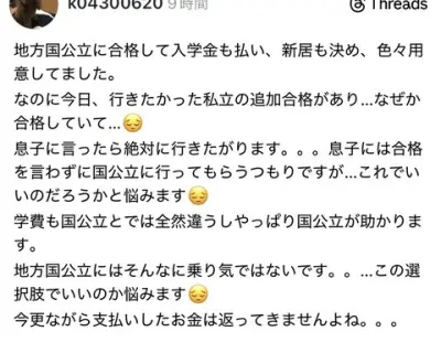 【悲報】母「息子が第一志望の私立に追加合格したけど学費高いから教えないです…」