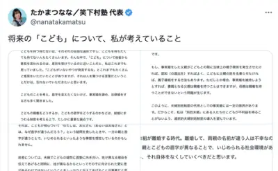 たかまつなな、子どもの姓めぐる問題に持論「両親の名前が違う人は不幸なのでしょうか」